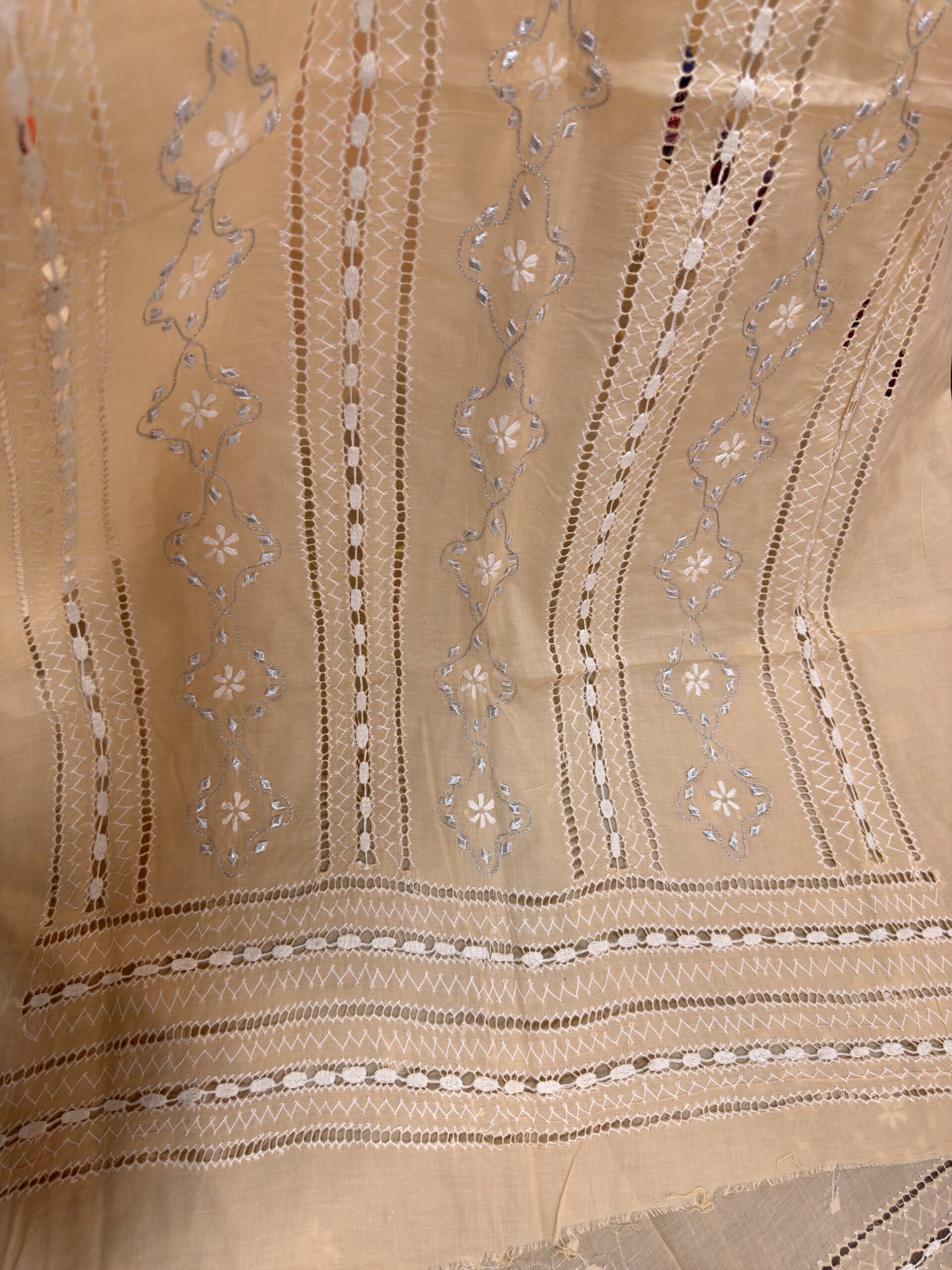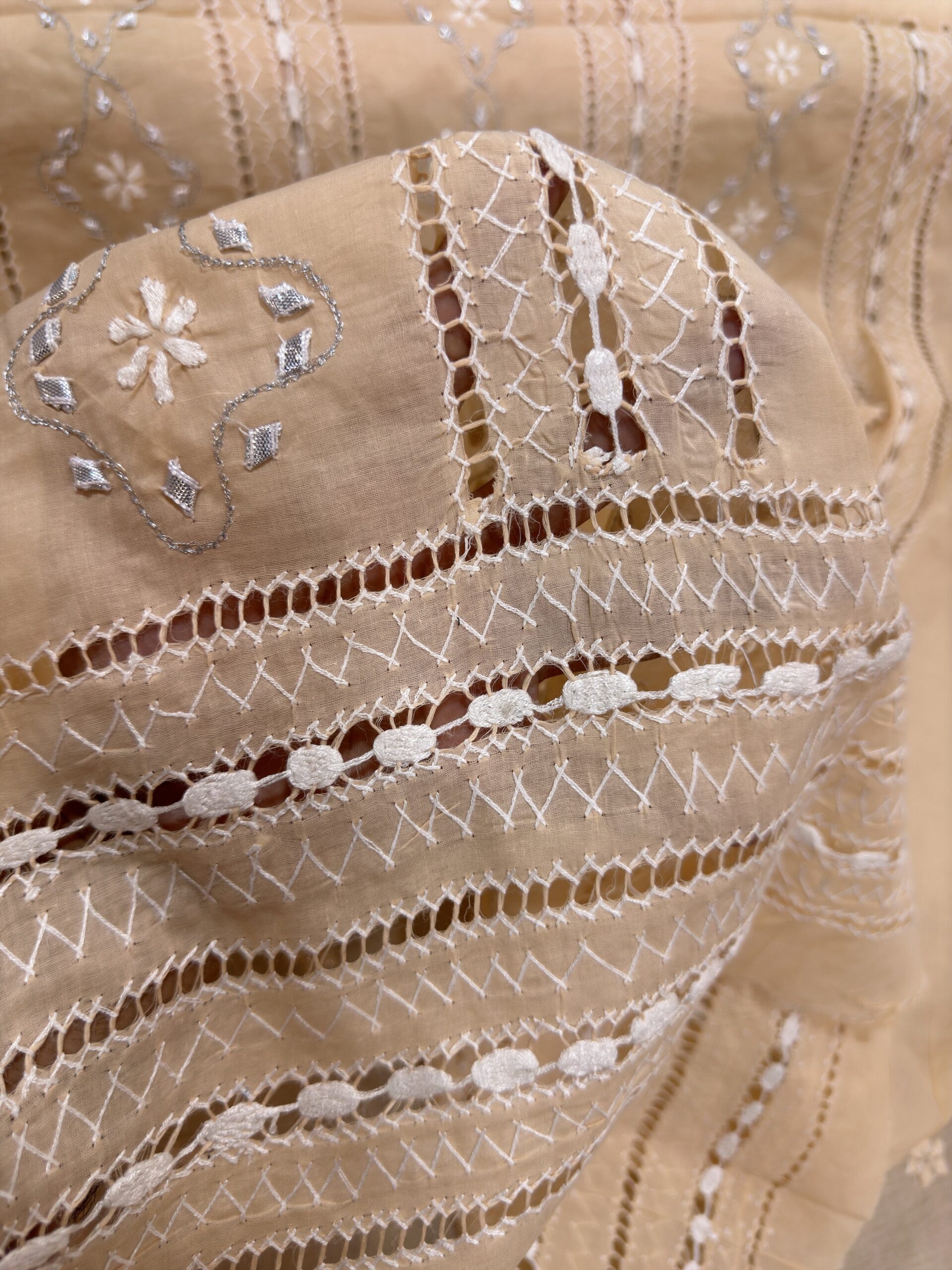 A graceful blend of Taarkashi and Chikankari, adorned with delicate Gota work.